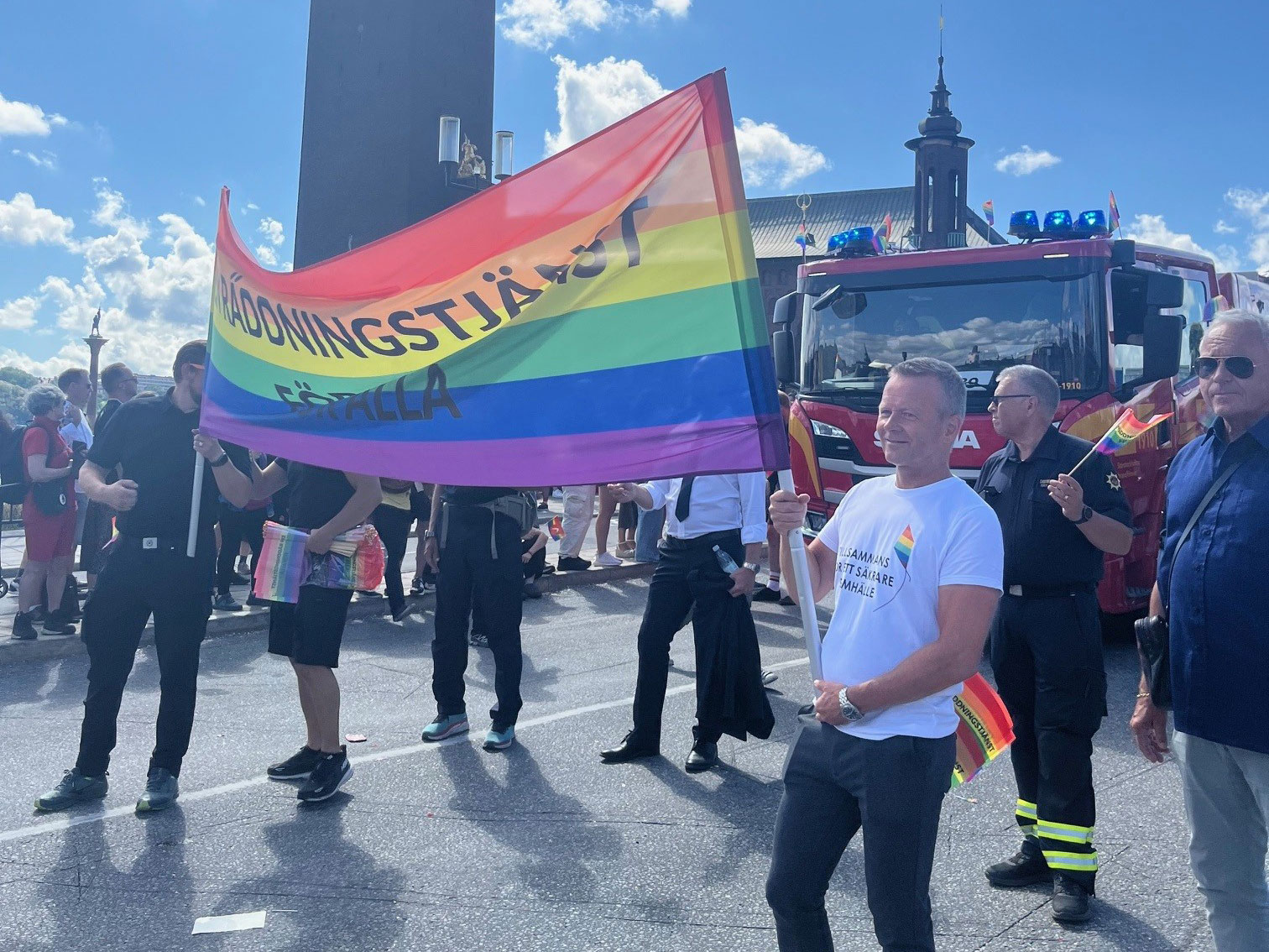 Att delta i Pride signalerar också att alla behövs. Personalförsörjning är redan nu en utmaning för räddningstjänsten. Säkerhetsläget och allt fler klimatrelaterade händelser gör behovet att rekrytera och behålla ännu mer angeläget, konstaterade Frisell.
